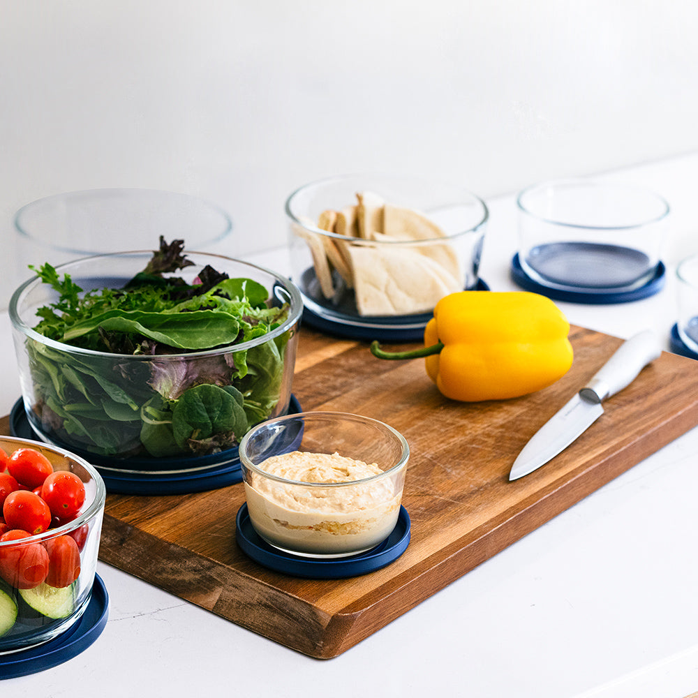 • Set Includes: (2) 1-cup, (2) 2-cup, (2) 4-cup, (2) 6.5-cup, (8) BPA-free plastic lids for secure sealing and freshness, with additional multi color lids to mix and match your set!