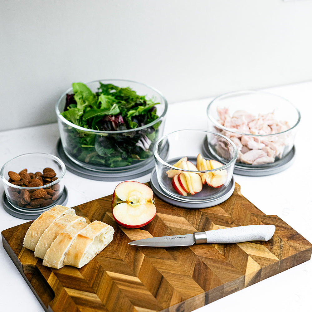• Set Includes: (2) 1-cup, (2) 2-cup, (2) 4-cup, (2) 6.5-cup, (8) BPA-free plastic lids for secure sealing and freshness, with additional multi color lids to mix and match your set!